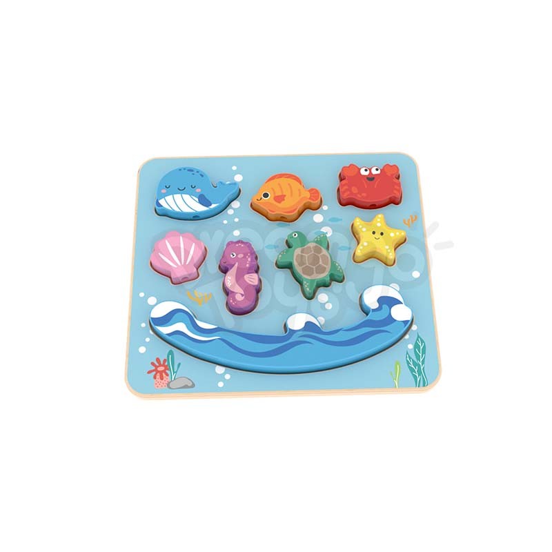 This innovative 3-in-1 educational toy features 7 animal pieces and a wave-shaped base. Children can play as a puzzle, balance stacking game, or threading activity using side holes. Develops fine motor skills, patience, and hand-eye coordination for 36+ months. Measures 20×18×1.5cm, meeting EU/US safety standards.
