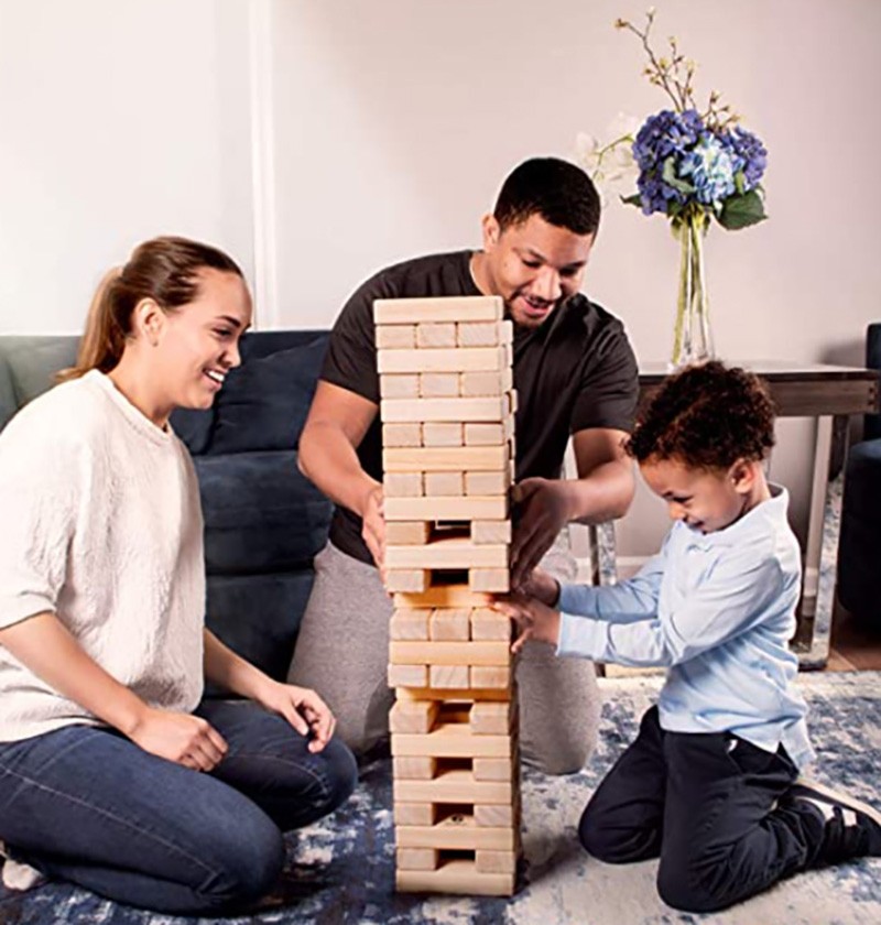 Our Giant Wooden Tumble Tower brings classic stacking fun to a larger scale. Each set contains 54 precision-cut wooden blocks measuring 15x5x3cm, creating an impressive tower over 1.5 meters tall when fully assembled. Perfect for both indoor family games and outdoor lawn activities.