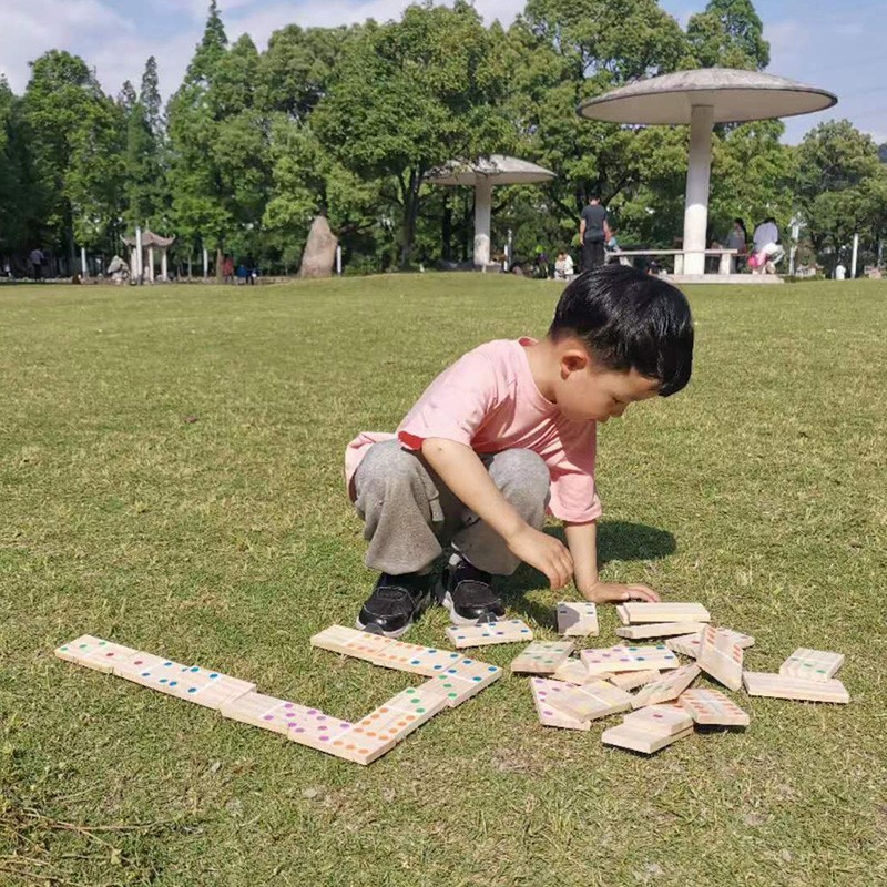 The Giant Wooden Dominoes Set elevates classic gameplay to new dimensions. This comprehensive 28-piece set features oversized tiles measuring 11x5x1cm, crafted from premium pine wood with vibrant colored pips on each end. Perfect for multiple game variations including blocking, scoring, and matching games, each set comes with a convenient storage bag for easy organization and portability.