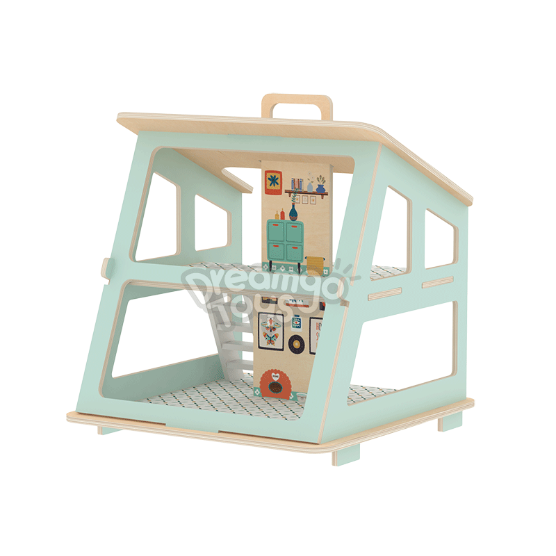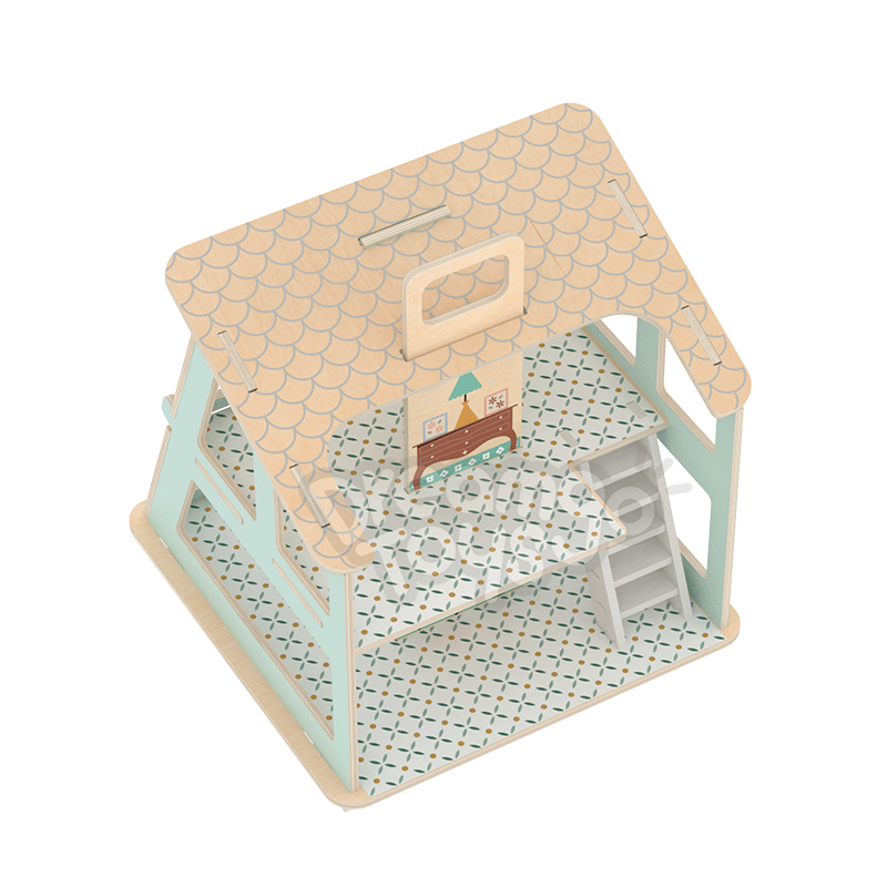 The Wooden Chic Table Villa features a stylish 2-story design with slanted roof and large window. This 30x30x30cm dollhouse includes reusable silicone sticker furniture and stable 3D staircase. The screw-free interlocking structure allows easy child assembly while maintaining durability. Offers better value and quality control than traditional screw-assembly dollhouses.