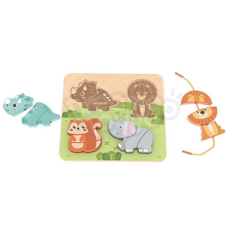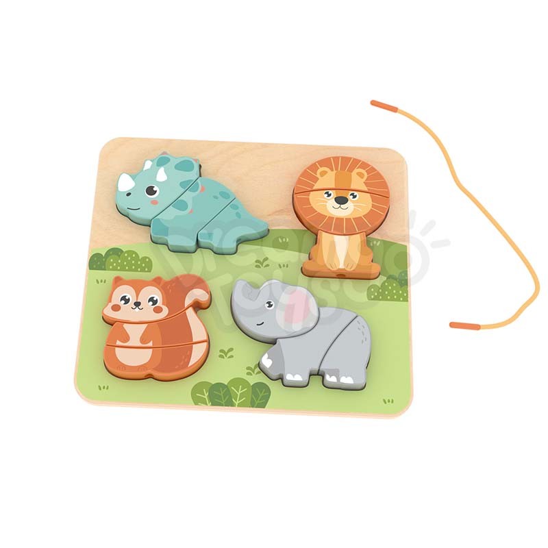 This innovative puzzle features 4 forest animals, each composed of 3 interlocking pieces. Children can assemble the animals, place them on the puzzle board, and practice threading through side holes. Designed to develop fine motor skills and hand-eye coordination for toddlers 24+ months. Measures 20×18×1.5cm and meets EU/US safety standards.