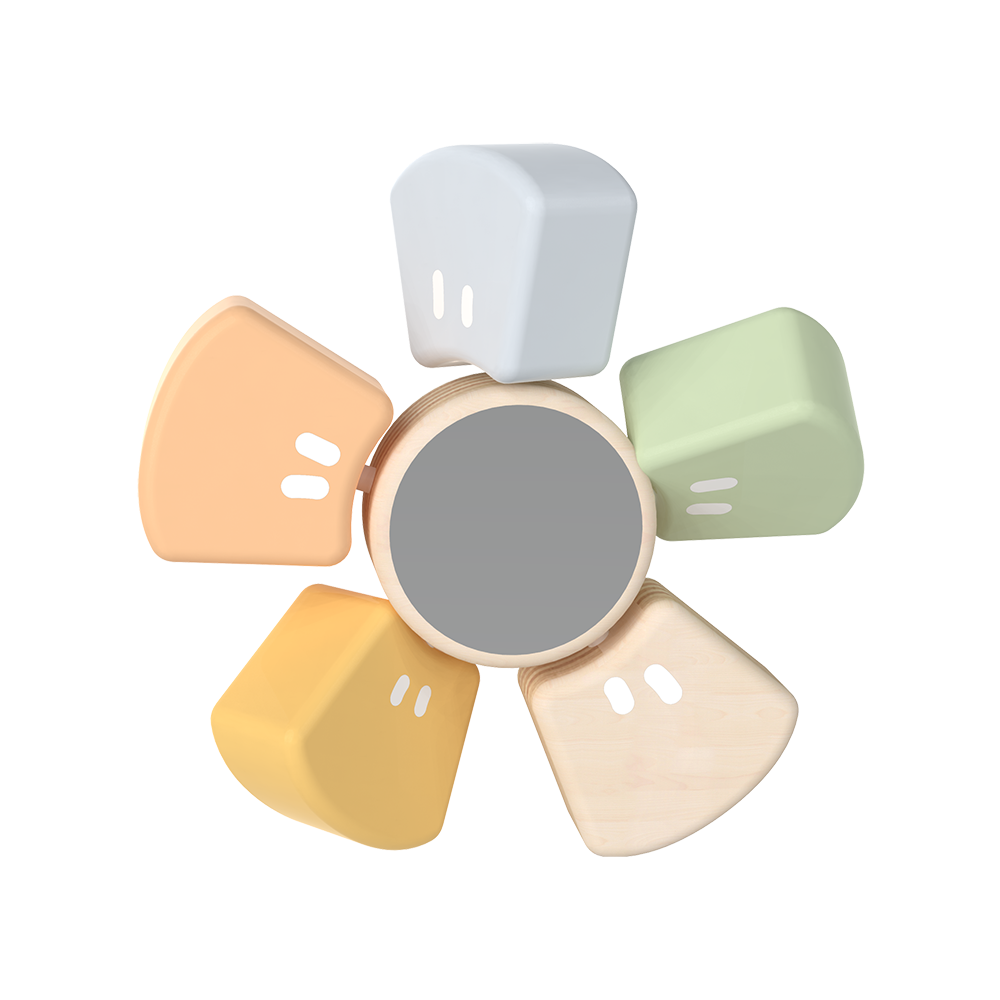 Our developmental Wooden Flower Rattle is specially designed for infants 0+ months to stimulate multiple senses. The flower features rotating petals that help develop fine motor skills, while the embedded safety mirror encourages visual tracking and self-discovery. The 3.2" diameter flower with 1" stem is perfectly sized for tiny hands to grasp and explore.